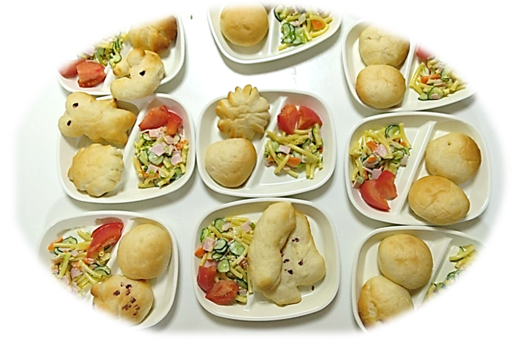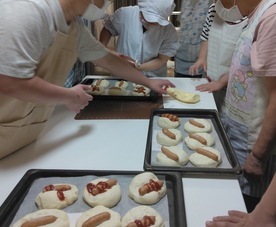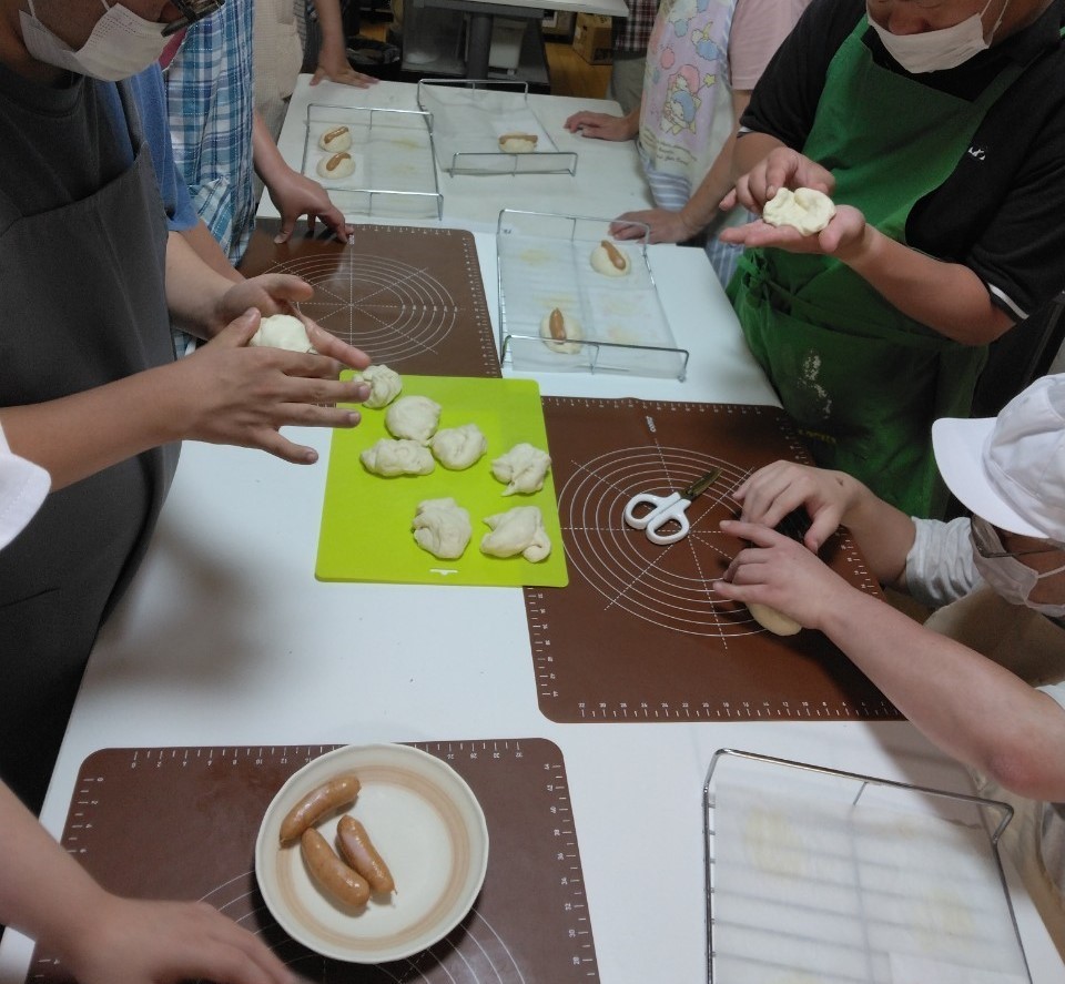 自分たちが食べる昼食のパンとウィンナーパンとブドウパンを作ります。