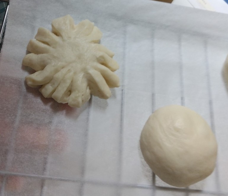 おー、太陽の形に切れ目を入れたんですね。どんな形に焼けるかな?楽しみです💛
